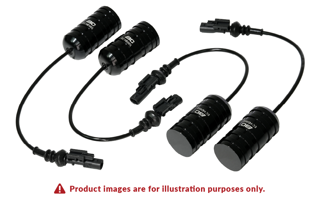 ⚠ THE BC RACING EDC DELETE KIT ELIMINATES WARNING LIGHTS OR ERROR CODES GENERATED FROM REMOVAL OF OE ELECTRONIC DAMPING CONTROL SHOCKS ONLY. AIR SUSPENSION CANCELLATION MAY REQUIRE OTHER DEVICES OR SOLUTIONS.